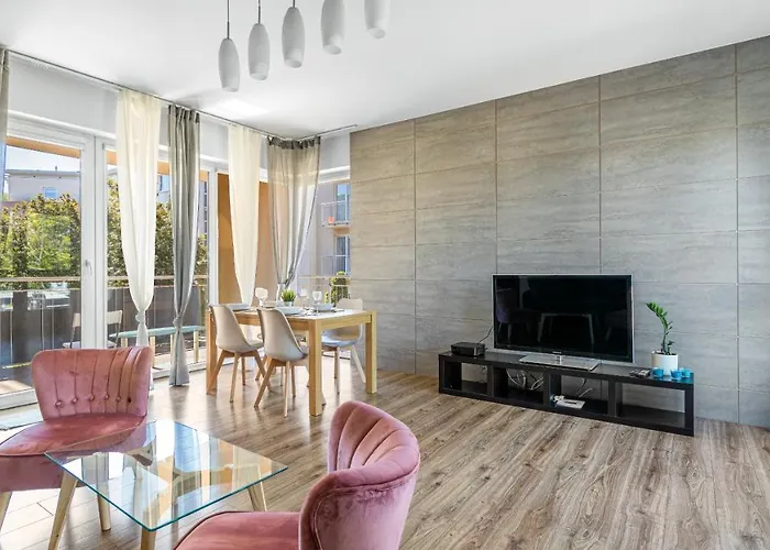 The spacious 84 m^2 Alzacja Apartment offers views of the garden and a location 4.3 km from Pier in Sopot. Various sport options, such as hiking, are provided in the area.